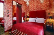 A grand sweeping staircase in the lobby sets the tone. Lush splashes of red mingle with leather and dark woods creating a hushed, elegant and sophisticated atmosphere. The theme continues throughout the rooms which are particularly spacious for Paris.
